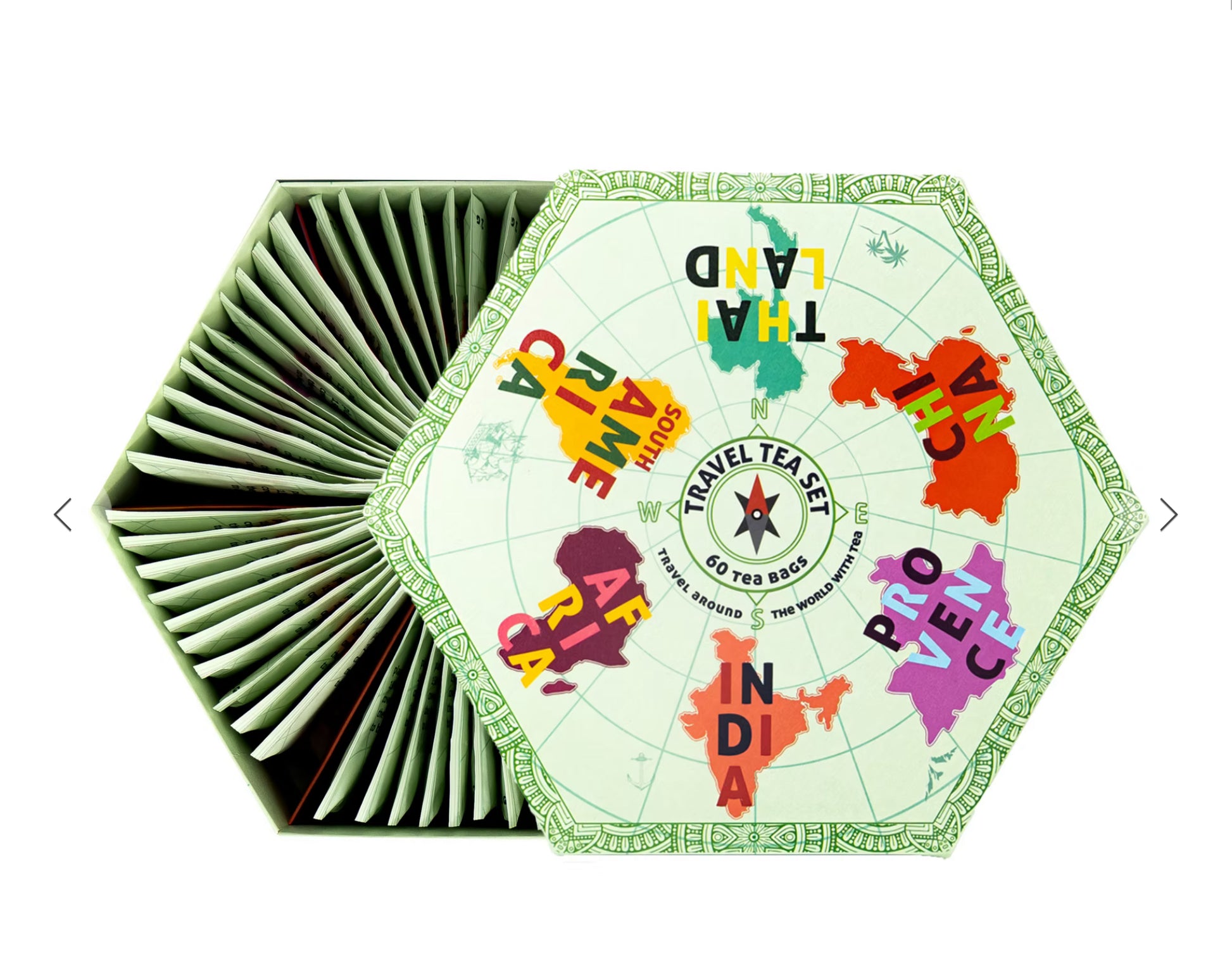 Arbatos rinkinys “KELIAUTOJAS” – tai skonių kelionė aplink pasaulį, sudėta į vieną dėžutę. Net 60 arbatos pakelių , po 10 iš kiekvienos pasaulio krypties – nuo Azijos iki Amerikos, nuo levandų laukų iki džiunglių žalumos.